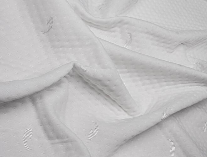 Матрасные ткани – это трикотажные материалы. Они мягкие, эластичные, обладают отличной воздухопропускной способностью. По сути это двухслойная ткань, полотна которой соединены специальной фигурной стежкой. Внутри находится слой наполнителя для большей мягкости, объема, плотности, гигроскопичности. Такой материал отлично дышит, приятен на ощупь и красиво очерчивает рельеф, при этом достаточно легко подгибается и прошивается в кант. Кроме того отличается отличной устойчивостью к разрывам, сминанию, хорошо держит и восстанавлиет форму.